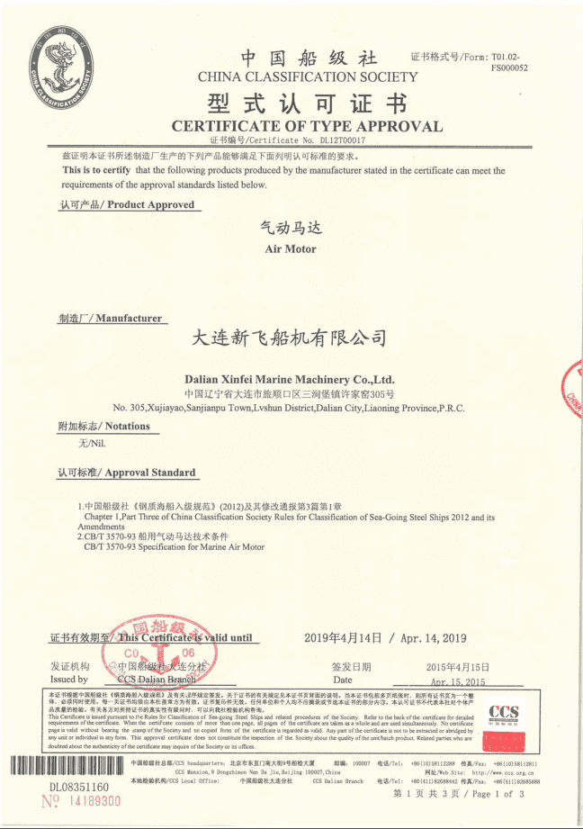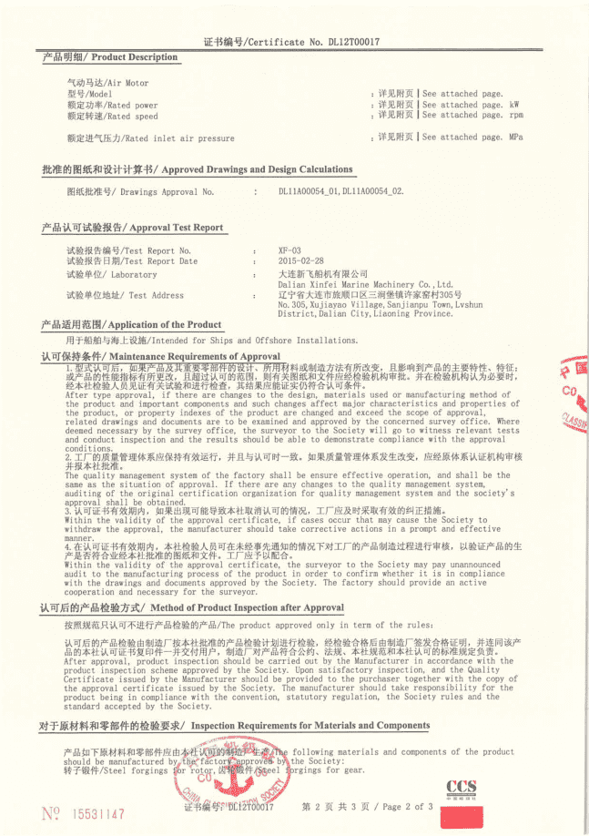 CCS 馬達(dá)型式認(rèn)可